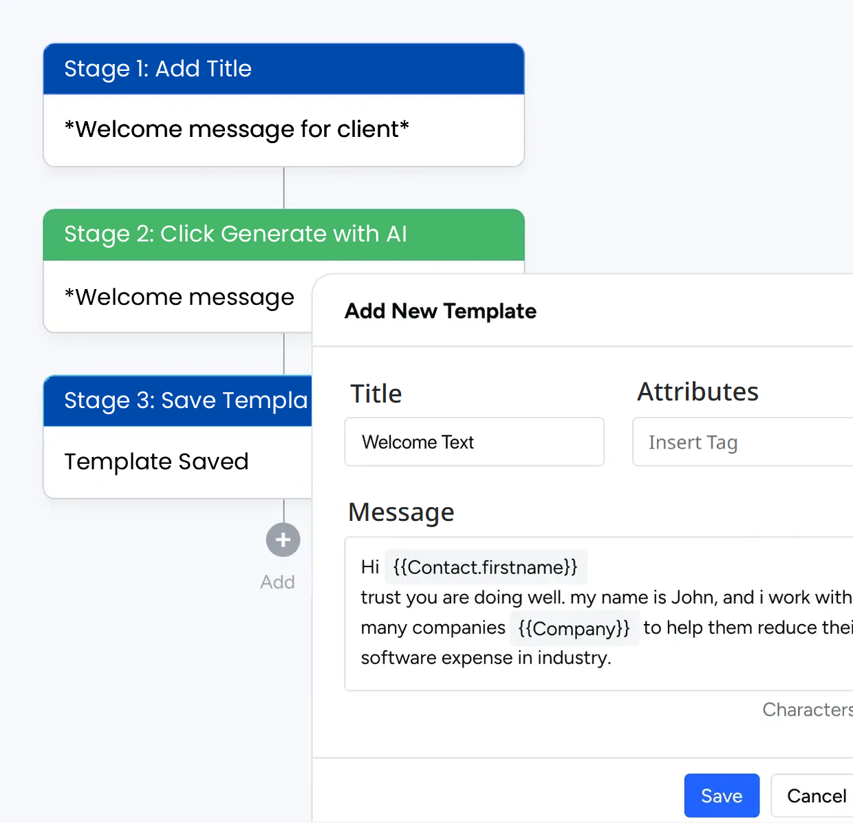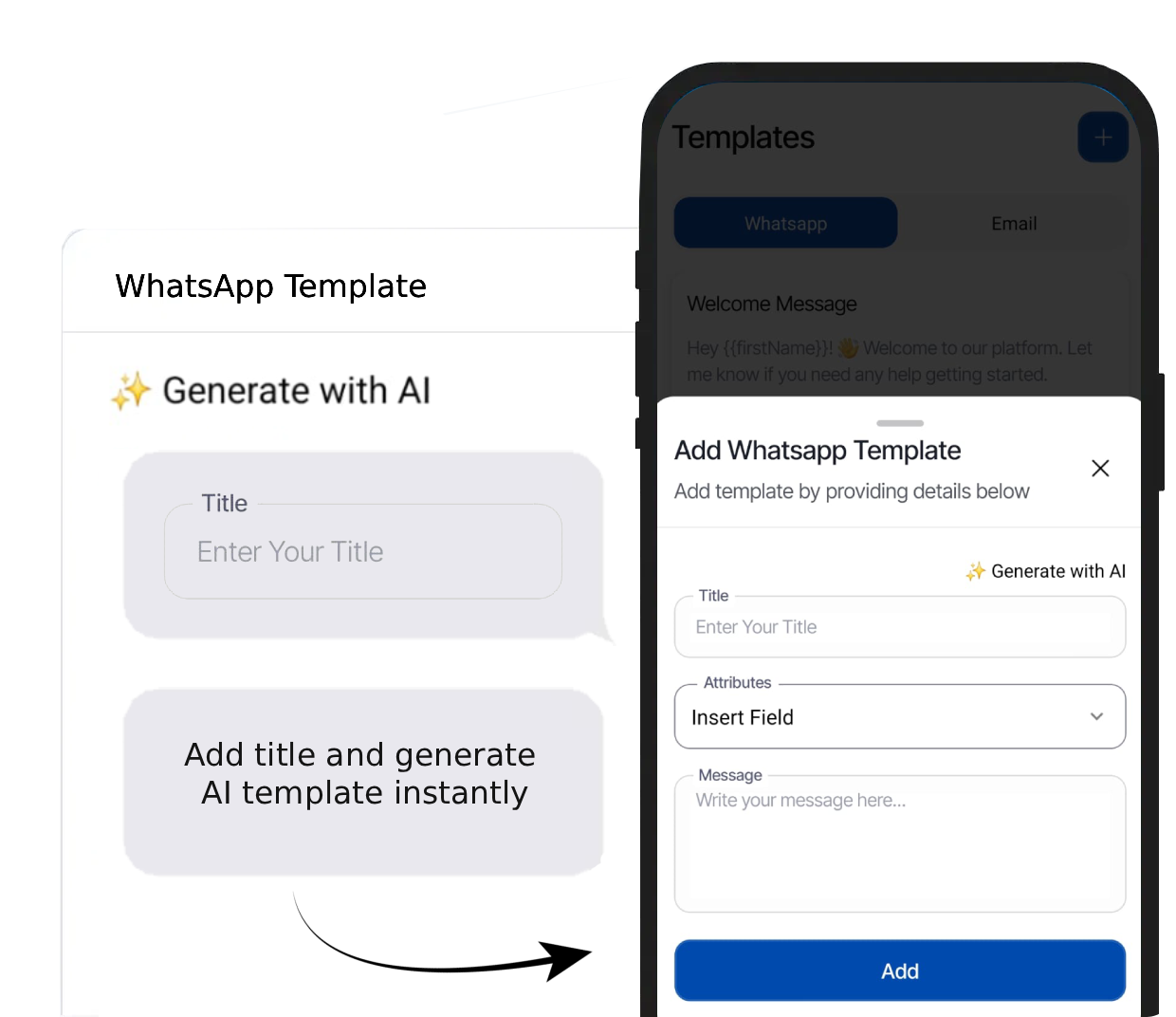 Boost your efficiency and maintain consistency with AI-powered message templates. Quickly respond to common queries, follow up with leads, and keep your communication professional — all directly from your CRM.