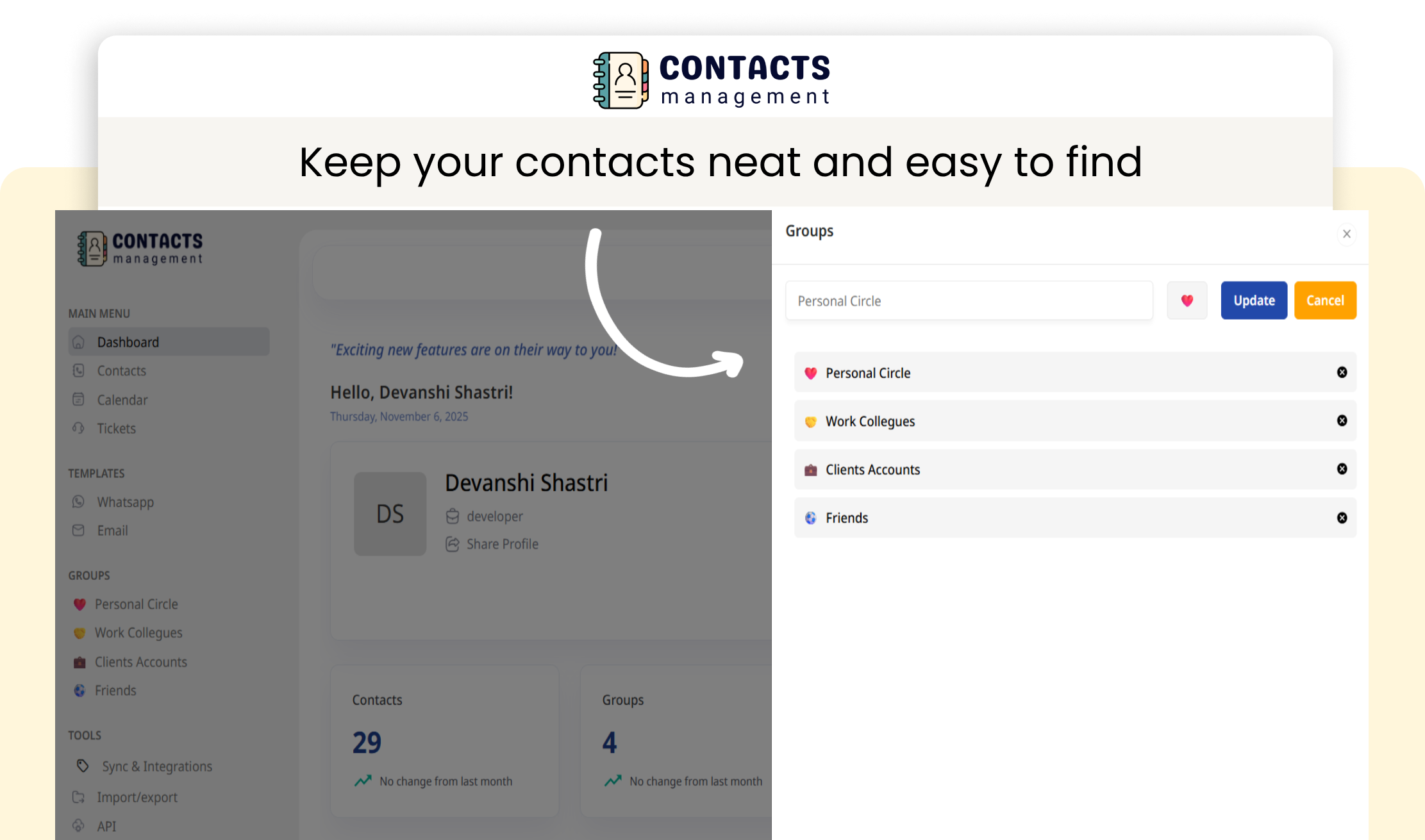With Smart Segment, you can organize and group contacts using tags, filters, and custom fields—helping you personalize communication, improve engagement, and close more deals.